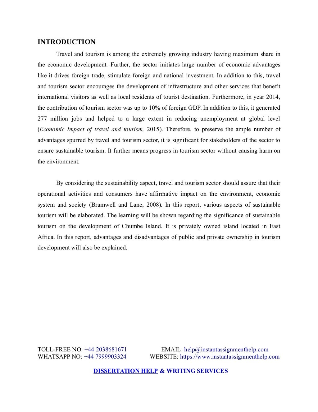 Destination Management Functions in Tourism Executive summary The business tourism sector is one of the most tremendously expanding business sectors in the tourism industry. This expanding sector is also known as MICE in some countries as it involves meetings, various incentives, different conferences as well as exhibitions Here are carefully curated Tourism Dissertation Topics Help that might inspire you to work on a Tourism Dissertation Topics Ideas that will fetch you impressive grades. A list of pertinent tourism dissertation topics Elucidate the concept of ecotourism with a focus on the eco-tourism spots across the UK The best way to write a dissertation on tourism is to choose the topic that you most feel comfortable about. Accommodation tourism. Food and Beverage Services. Recreation and Entertainment. Transportation. Travel Services. Ecotourism. Dark Eco tourism. Hospitality. Tourism Management